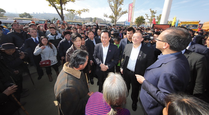 今天正式开工的首批援建40项重点工程和200个农牧业产业化基地项目,成为我们结对帮扶毕节市大方县精准脱贫的新起点。在全国政协的领导下,在贵州省、毕节市和大方县各级党委政府的大力支持下,我们有决心、有信心帮助18万大方县贫困群众到2018年底实现全部稳定脱贫。同时,我们也希望通过结对帮扶大方县的探索与实践,能走出一条精准扶贫、精准脱贫的新路子,总结出一个可以借鉴推广的新模式,造福更多贫困老百姓。