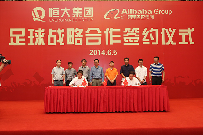 2014年6月5日,恒大集团、阿里巴巴集团足球战略合作签约仪式在广州举行。广州恒大足球俱乐部第一次引入战略投资者,增资扩股,阿里巴巴12亿元入股俱乐部,和恒大分别拥有增资扩股后俱乐部的50%股权。恒大集团董事局主席许家印与阿里巴巴集团董事局主席马云出席了签约仪式,并共同参加了随后举行的媒体交流会。